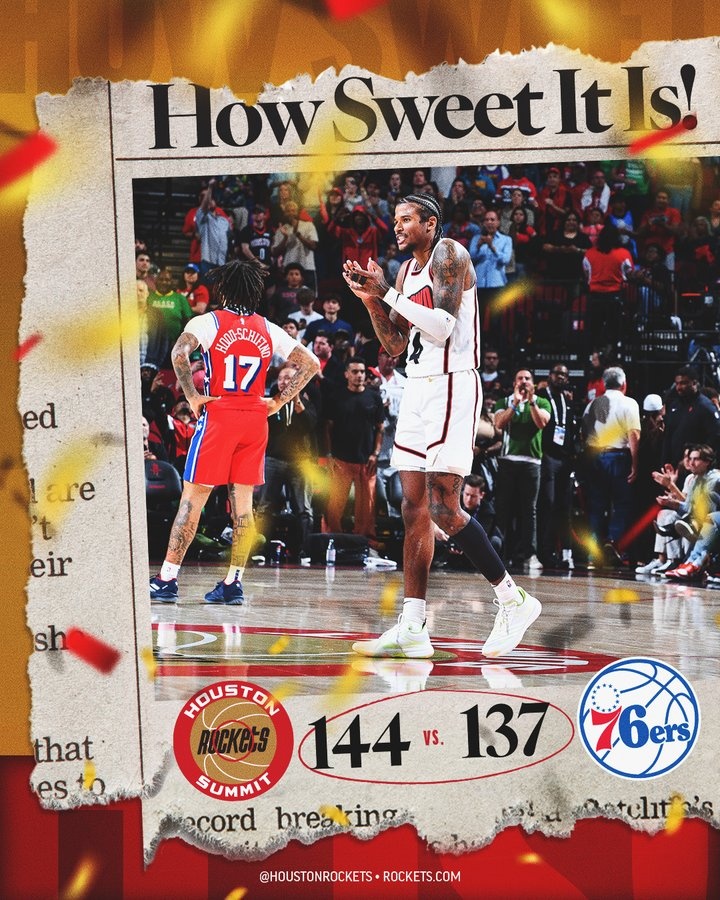 3月18日訊 NBA常規賽,火箭加時144-137險勝76人。