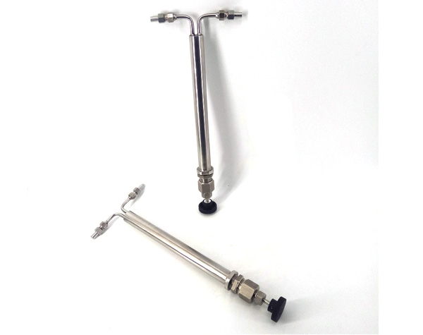 雙針式減壓閥采用超長(zhǎng)調(diào)節(jié)通道和超長(zhǎng)調(diào)節(jié)閥桿的設(shè)計(jì),很大范圍的進(jìn)行流量、壓力的調(diào)整。棒針式減壓閥TS-193A流量調(diào)節(jié)從每公鐘150毫升至4公升、壓力下降至5000Psig的345巴爾格。該減壓閥的減壓的主要原理是當(dāng)高壓樣水通過(guò)時(shí),利用細(xì)長(zhǎng)棒針與管內(nèi)孔之間的間隙,達(dá)到減壓的目的。當(dāng)減壓閥的入口處壓力一定時(shí),只須改變棒針的插入深度,即可調(diào)整減壓閥出口壓力,控制樣品流量。