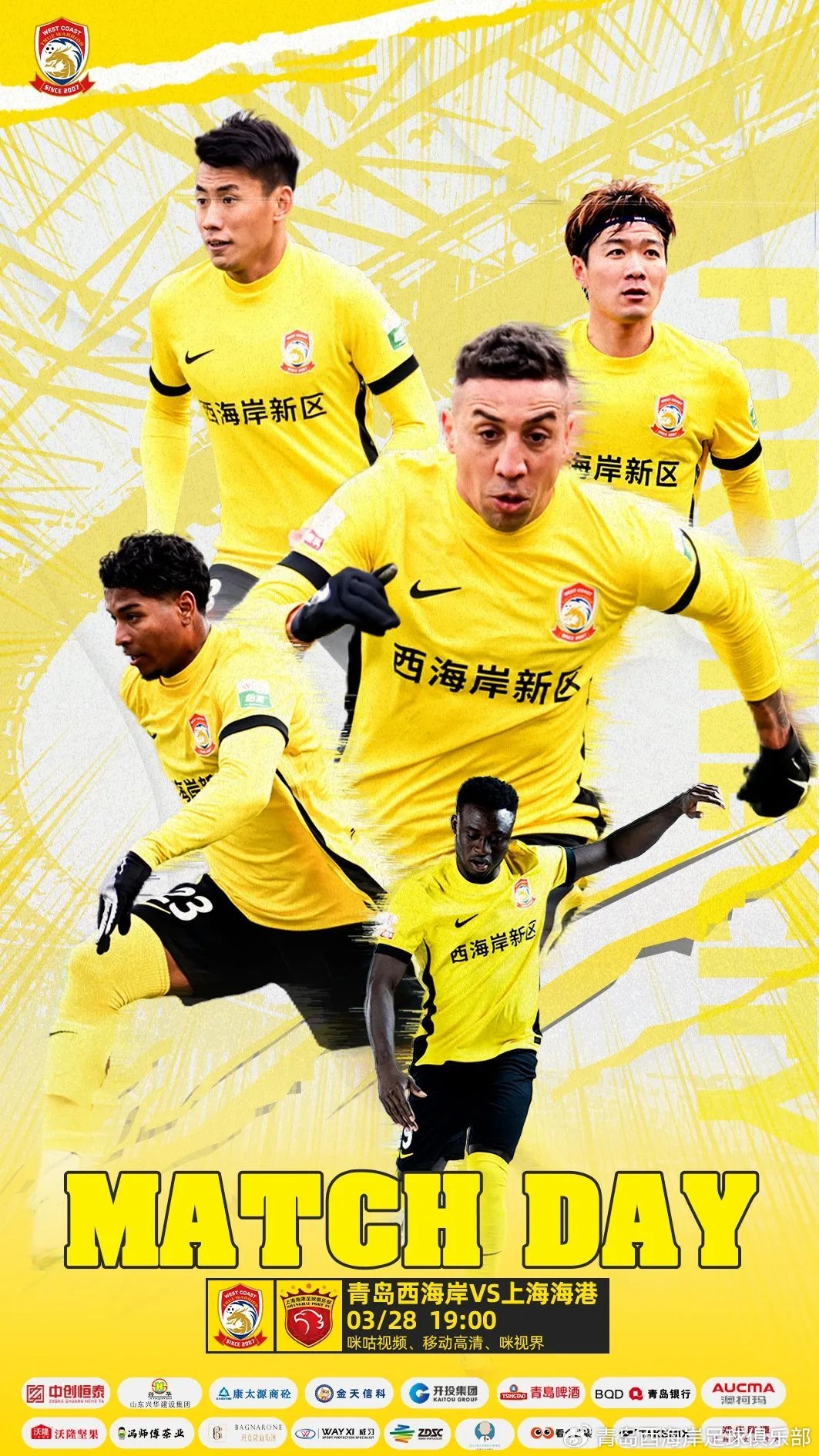 03月28日訊 北京時間今晚19點,中超第3輪,青島西海岸主場迎戰上海海港,賽前雙方公布首發陣容。